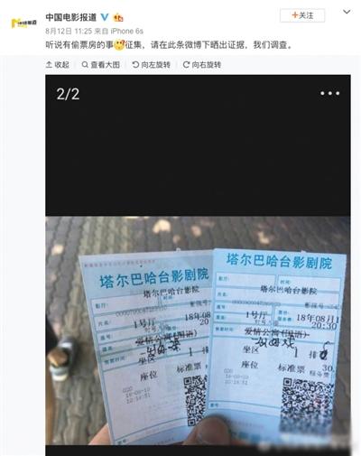 內(nèi)蒙古網(wǎng)友Zinc_Zn_Zn在微博上曬出包百嘉峻影城偷票房,她買的《一出好戲》的票,結(jié)果票根卻是《愛情公寓》。該影城提供了當(dāng)天所有影片排場證明,《愛情公寓》為19:10的場次,同一時(shí)間沒有《一出好戲》的場次,網(wǎng)友微博所發(fā)情況不屬實(shí)。