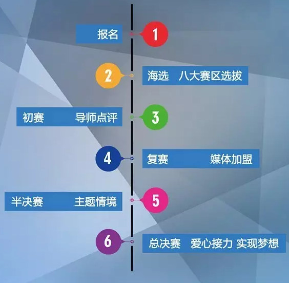 總決賽:公益主題演講??倹Q賽與社會公益結(jié)合,選手策劃完成不同的公益行動,根據(jù)各自經(jīng)歷進(jìn)行主題演講,傳遞社會正能量。