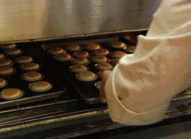 原來這款芝士蛋撻里面是芝士醬,外面卻是曲奇,所以吃起來口感會不一樣,外脆內(nèi)糯的感覺,上面刷一層蛋黃液增加口感,推進(jìn)烤箱靜靜等待。