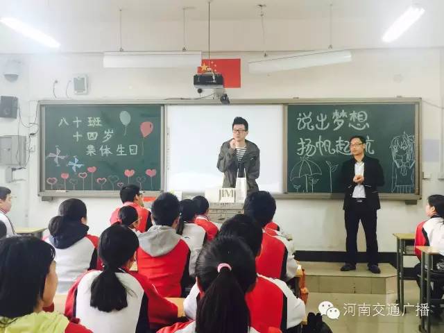 班主任李少鋒老師很激動,他說,沒想到一條小小的微信,竟然真的請到了河南交通廣播主持人來給同學們送蛋糕,他說,這樣的班會開得很有意義,讓孩子們學會分享,是與同學們心貼心的交流。