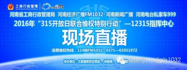 重要消息!3月14日上午9點30至11點,河南經(jīng)濟廣播將在河南省工商局12315消費者投訴舉報中心搭建直播室,與河南新聞廣播、河南電臺私家車999,并機直播“315開放日聯(lián)合維權特別行動”!