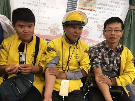 在附近的外賣小哥聽(tīng)到有獻(xiàn)血活動(dòng),送完外賣后立刻趕來(lái),獻(xiàn)完血后又繼續(xù)工作去了。