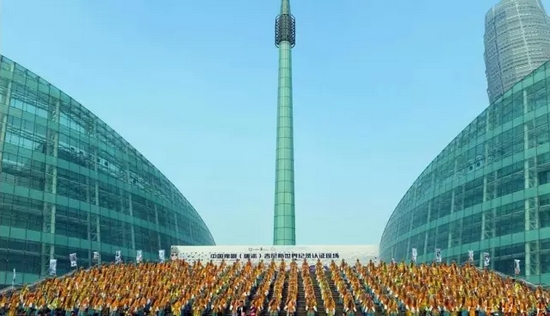 志愿者按照吉尼斯認證官的要求,