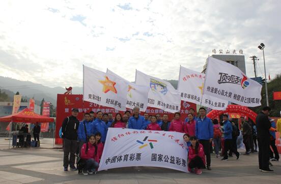 在眾多代表隊(duì)中有一只團(tuán)隊(duì)頗具特色,那就是由80人組成的“信陽(yáng)體彩優(yōu)秀業(yè)主代表隊(duì)”,身著藍(lán)色或紅色運(yùn)動(dòng)裝,高舉印有體彩各類玩法和公益宣傳的6面大旗,在人群中極為亮眼,展示了體彩人的良好形象。為了讓廣大群眾了解體彩公益,體彩信陽(yáng)分中心還在開(kāi)幕儀式現(xiàn)場(chǎng)設(shè)置了大型噴繪展板,展示了近15年來(lái)信陽(yáng)體彩造福老區(qū)、推動(dòng)我市體育事業(yè)和公益事業(yè)前行所做出的貢獻(xiàn),以及體彩公益金的主要用途,詮釋了購(gòu)買體育彩票的社會(huì)價(jià)值。