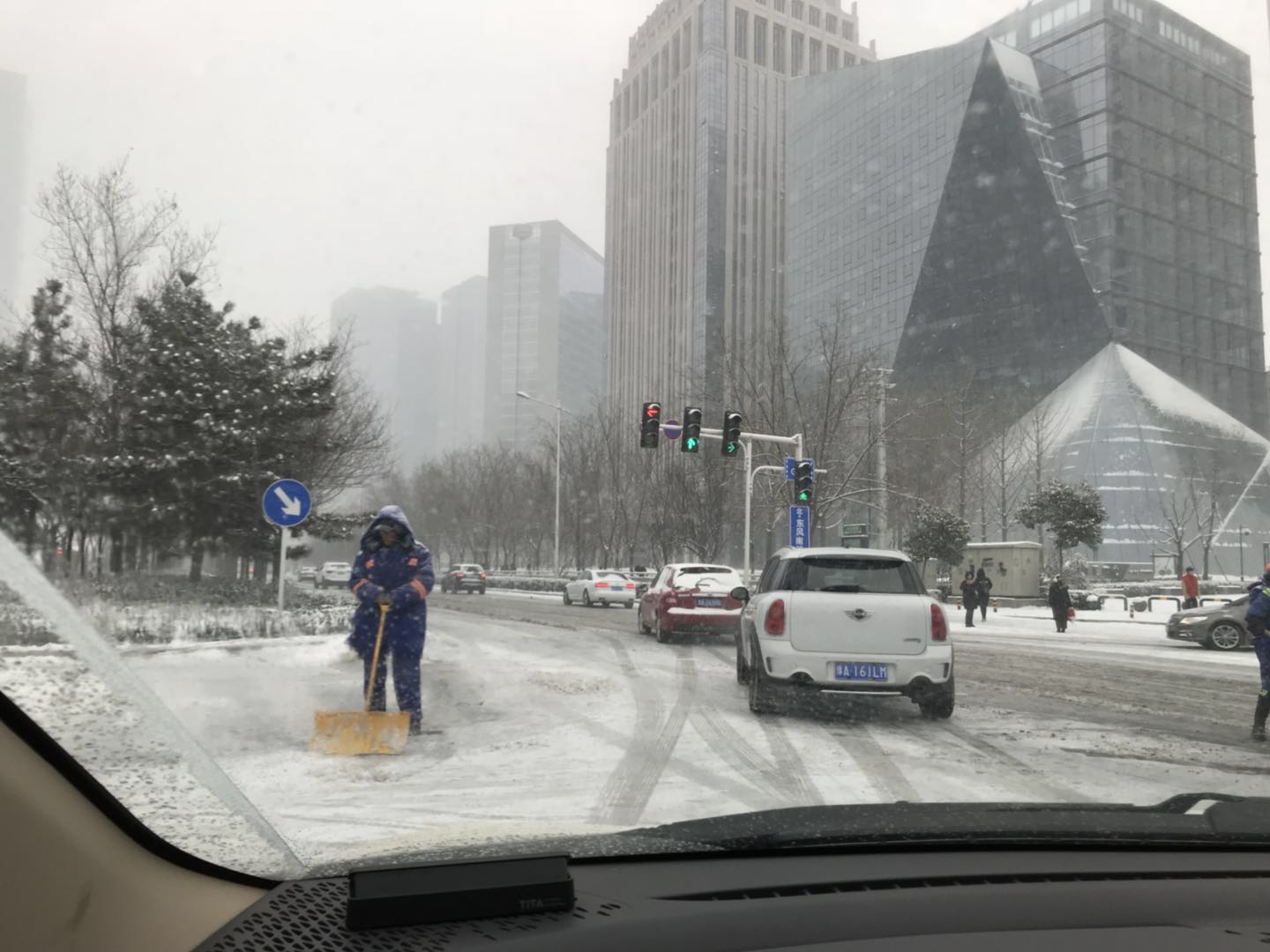 鄭州機(jī)場(chǎng)緊急啟動(dòng)除雪保障預(yù)案,機(jī)場(chǎng)各崗位徹夜未眠連續(xù)工作,對(duì)飛機(jī)跑道、滑行道、停機(jī)坪和對(duì)機(jī)場(chǎng)地面交通道路進(jìn)行撒鹽、掃雪等一系列除冰雪保障工作,以保障廣大旅客安全出行。只見大的除冰機(jī)上寫著:雪不凈冰不化我們不休息!