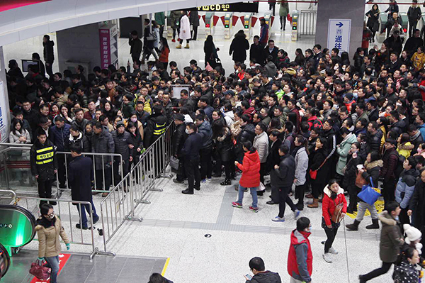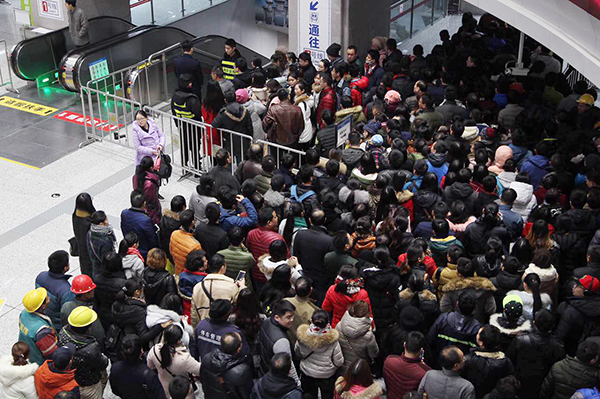 受雨雪天氣影響,鄭州軌道交通1、2號(hào)線進(jìn)出站客流激增。