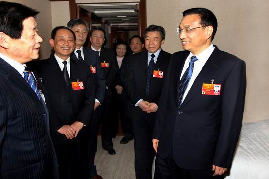3月2日下午,中共中央政治局常委、國務院副總理李克強親切看望了參加十一屆全國人大五次會議的河南代表團代表。 (河南日報記者 郭宇 李建峰 攝)