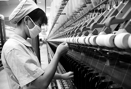 3月26日,位于鄧州市產(chǎn)業(yè)集聚區(qū)內(nèi)的永泰棉紡股份有限公司員工正在趕制訂單產(chǎn)品。 盛志國(guó) 攝