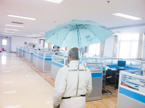 昨日,康明智老人當(dāng)著記者的面,演示起“傘架”的使用方法?!皞慵堋庇刹讳P鋼管制成,“傘架”上方的兩個(gè)掛鉤可直接掛在人肩膀上(如圖),掛鉤上方則是一根不銹鋼管,鋼管上裝上了夾子,用于固定雨傘,鋼管里面又裝上轉(zhuǎn)軸,可以來(lái)回轉(zhuǎn)動(dòng)雨傘的方向,掛鉤下面則用兩根粘膠帶連接固定在人的腰部。