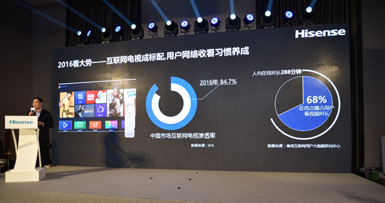 2016年,海信圍繞視頻、教育、游戲、購(gòu)物四大核心業(yè)務(wù)持續(xù)提升用戶運(yùn)營(yíng)服務(wù),互聯(lián)網(wǎng)電視激活用戶數(shù)達(dá)到2434萬,日活用戶數(shù)達(dá)到900萬,再創(chuàng)行業(yè)新高。海信電器總經(jīng)理胡劍涌表示,2017年,海信將通過用戶體驗(yàn)和視頻服務(wù)升級(jí)打造互聯(lián)網(wǎng)電視第一用戶平臺(tái)。2017年海信互聯(lián)網(wǎng)電視運(yùn)營(yíng)目標(biāo)是激活用戶總數(shù)達(dá)到3300萬,日活用戶達(dá)到900萬。