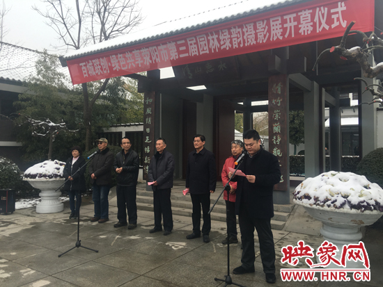 映象網(wǎng)訊 22日上午10時(shí),由鄭州市風(fēng)景園林協(xié)會(huì)園林文化產(chǎn)業(yè)分會(huì)、滎陽書畫院主辦,滎陽市攝影家協(xié)會(huì)承辦的“百城聯(lián)創(chuàng).綠色共享”滎陽市第三屆園林綠韻攝影展在滎陽植物園內(nèi)開幕。原滎陽市人大副主任王海林、原市政協(xié)副主席閏紅舉、市攝影協(xié)會(huì)名譽(yù)主席李軍嶺、市園林中心主任李向陽、市園林中心副主任梅慧君以及市攝影協(xié)會(huì)理事會(huì)員、攝影愛好者們參加了開幕式。