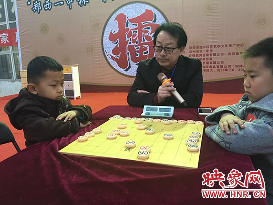 在現(xiàn)場,坐在記者旁邊的一號選手楊圣煊剛6歲,目前還在上幼兒園大班,媽媽王青霞介紹說,2016年8月,楊圣煊代表滎陽到德國參加“凱撒杯”首屆世界青少年象棋錦標賽,獲得8歲組第二名,并擔任象棋推廣小使者?!皸钍レ硬粌H能兩個人對弈,還能下車輪戰(zhàn)和盲棋,英語講的也不錯!”