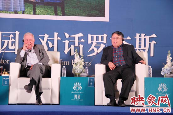 12月20日,河南省委宣傳部副部長、省新聞出版廣電局局長朱夏炎(右)與羅杰斯就文化產(chǎn)業(yè)投資展開對話。
