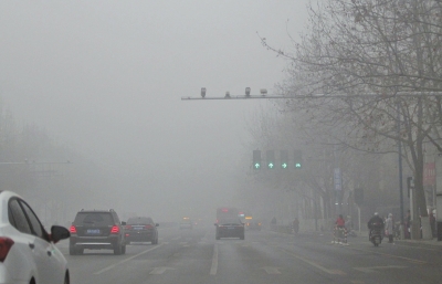 1月10日,霧霾鎖城,鄭州市區(qū)能見(jiàn)度很低。