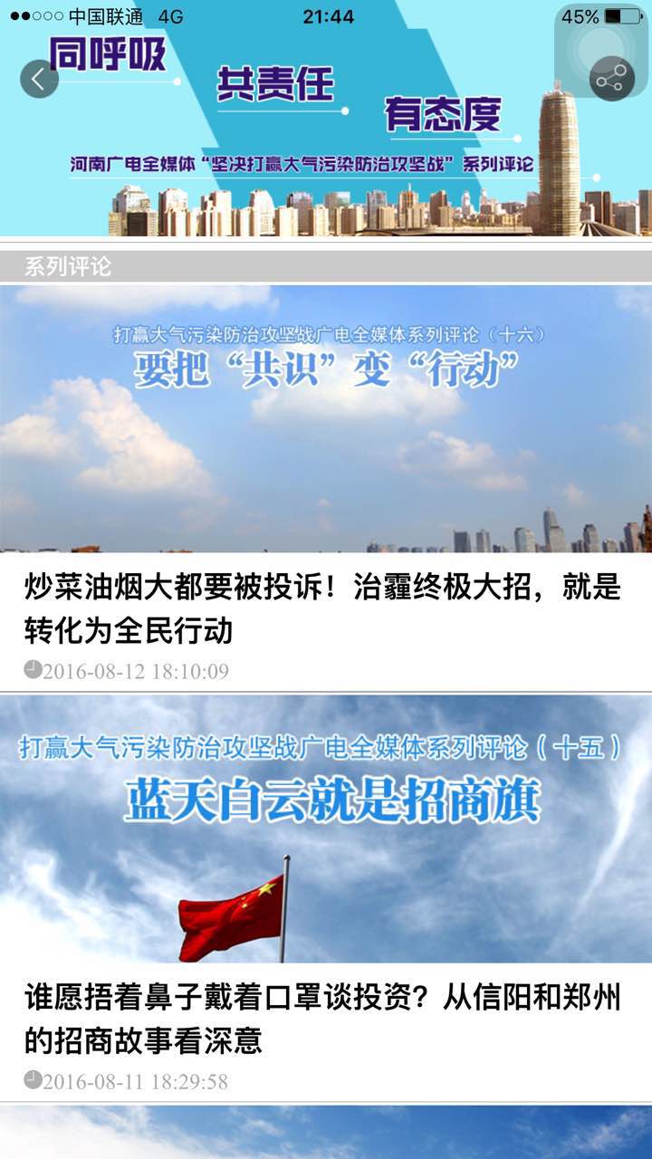 從7月份開始,河南開始打響大氣污染防治攻堅戰(zhàn),河南廣電全媒體推出“堅決打贏大氣污染防治攻堅戰(zhàn)”系列評論,到8月13日已經(jīng)推出了16篇。連日來,系列評論在社會上引起了方方面面的關(guān)注,產(chǎn)生了巨大影響。8月14日晚上,央視《新聞聯(lián)播》,也關(guān)注了河南大氣污染防治攻堅戰(zhàn)。