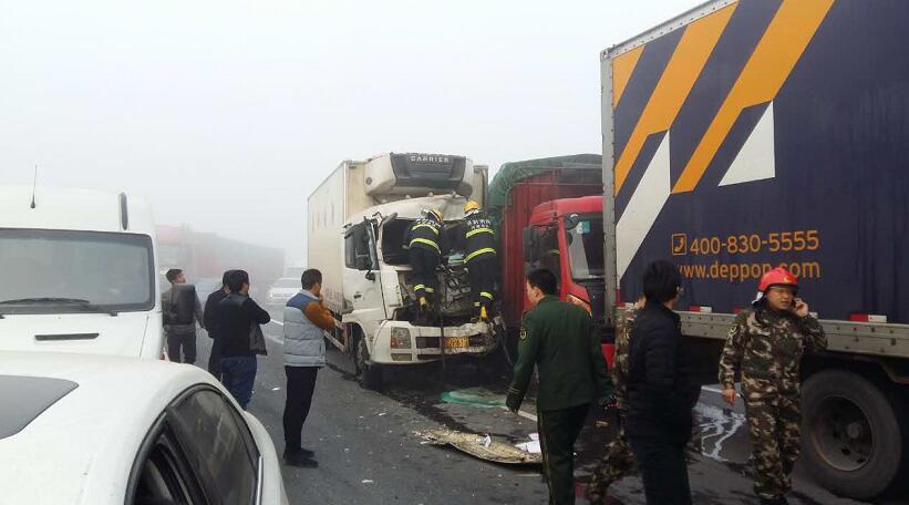 據(jù)現(xiàn)場(chǎng)郭先生描述:大概有4輛貨車,1輛中巴車,4輛私家車連環(huán)追尾,他就在這幾輛事故車后方,當(dāng)時(shí)受大霧影響,能見度50米左右,前方堵車,結(jié)果這幾輛車都沒剎住,直接相繼撞上了,郭先生說(shuō)“幸虧當(dāng)時(shí)我車速不算快,及時(shí)把車剎住,不然前方就是一輛貨車,撞上去的話后果不堪設(shè)想,現(xiàn)在我的手都是抖的,太恐怖了”。