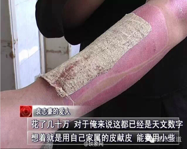 33歲的袁志豪,在新鄉(xiāng)輝縣經(jīng)營(yíng)著一家鹵肉店。3月1號(hào)晚上,他意外掉進(jìn)滾燙的鍋里,全身100%燙傷,皮膚全部壞死,隨時(shí)會(huì)有生命危險(xiǎn)。為了不耽誤治療,志豪的妻子、姐姐把自己的部分皮膚捐給志豪,就連患有腦梗塞的父親,也把整個(gè)左腿的皮膚給了兒子....