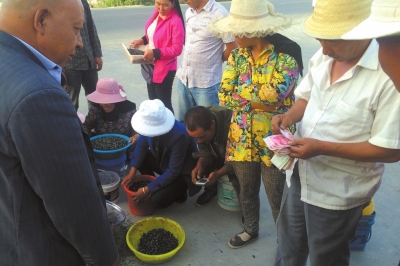 現(xiàn)場(chǎng)收購(gòu)盜采者采摘來的黑枸杞。