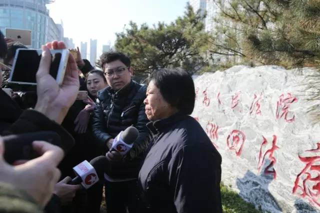 2016年12月2日,最高人民法院第二巡回法庭改判聶樹斌無罪。庭審結(jié)束后,聶母在法院外接受媒體采訪。新京報記者王飛 攝
