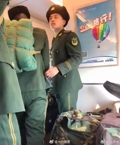 前兩天,@央廣軍事 發(fā)微博稱(chēng),一批剛從軍校畢業(yè)的學(xué)員登上了開(kāi)往分配地的列車(chē),幾乎占滿(mǎn)整個(gè)車(chē)廂。一些沒(méi)有買(mǎi)到坐票的乘客怨聲載道,嘟囔著為什么當(dāng)兵的不給讓座。