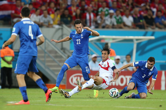 北京時(shí)間6月30日4時(shí),世界杯1/8決賽第4場(chǎng)在累西腓伯南布哥球場(chǎng)展開(kāi)較量,哥斯達(dá)黎加120分鐘與希臘戰(zhàn)為1比1,點(diǎn)球決戰(zhàn)5比3勝出,首次打進(jìn)世界杯8強(qiáng),也成為2002年美國(guó)之后首進(jìn)8強(qiáng)的中北美洲球隊(duì),將與荷蘭爭(zhēng)奪半決賽席位。下半場(chǎng),哥斯達(dá)黎加隊(duì)長(zhǎng)魯伊斯打破僵局,但中衛(wèi)杜阿爾特此后兩黃下場(chǎng)。補(bǔ)時(shí)階段,帕帕斯塔索普洛斯扳平比分。點(diǎn)球戰(zhàn),哥斯達(dá)黎加門將納瓦斯撲出耶卡斯點(diǎn)球。
