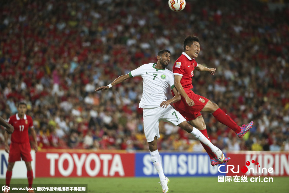 第21分鐘,中國隊(duì)前場反搶,于海和武磊打出快速反擊,于海強(qiáng)突橫傳門前,被沙特后衛(wèi)奧馬爾頭球解圍出底線。比賽進(jìn)行到25分鐘之后,沙特隊(duì)更多的利用腳下技術(shù)的優(yōu)勢打出小范圍配合,不過中國隊(duì)整體防守較為嚴(yán)密,并且通過積極地防守打出快速反擊威脅對方球門。