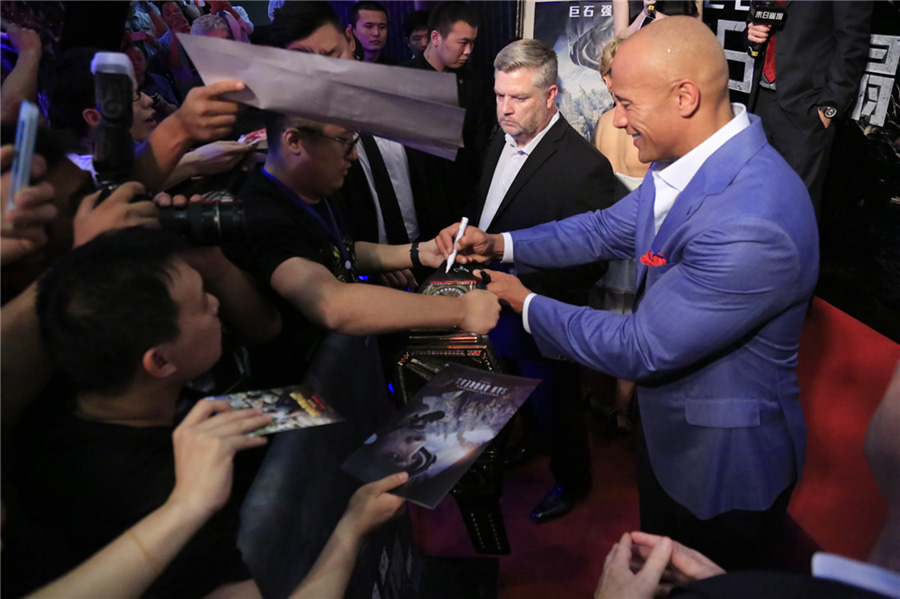 《末日崩塌》中國(guó)首映紅毯 巨石強(qiáng)森與粉絲嗨爆全場(chǎng)