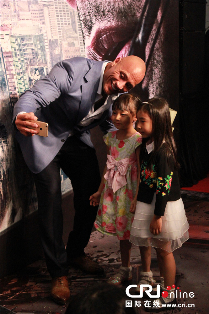 強(qiáng)森與獻(xiàn)花小粉絲賣萌自拍 見(jiàn)面會(huì)主創(chuàng)提醒“一定記得喘氣”
