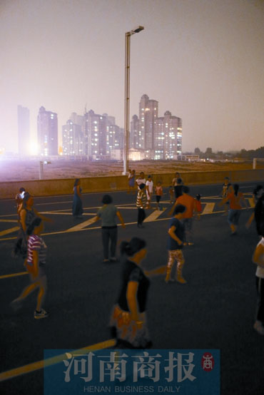 前天晚上7時(shí)30分,鄭州市南三環(huán)與京廣路交叉口向南500米路西,幾名市民沿著高架橋匝道向二層走去。高架橋二層橋面西側(cè),人們?nèi)宄扇海笕藗冞呑哌吜奶?,小孩兒則在車(chē)道上嬉笑玩耍。東側(cè),一名女士大步快速地向北走,“不刮風(fēng)不下雨,沒(méi)事兒就來(lái)這鍛煉?!贝送?,還有30多名市民正在跳廣場(chǎng)舞。