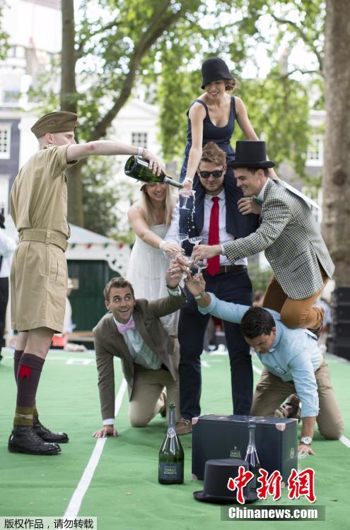 當?shù)貢r間2015年7月11日,英國倫敦,貝德福德廣場花園舉辦一年一度的“紳士運動會”。這是一個不以打破記錄為榮,而專為紳士打扮裝帥耍酷而設的趣味運動會,比賽項目包括“雨傘騎(車)斗”、“燙衣板沖浪”、“背人賽跑”等,現(xiàn)場參加者不一定會出汗出力,但一定要打扮成傳統(tǒng)紳士淑女風格,而叼煙、小酌一杯的鏡頭更讓人覺得這是一場嘉年華。
