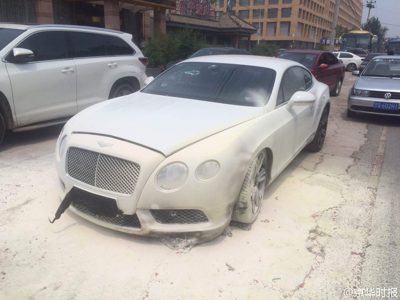 上午10點(diǎn),回龍觀龍禧三街一酒店門口,一價(jià)值400多萬(wàn)賓利車起火。目擊者稱,新娘從賓利下車后,車底因留有未熄滅鞭炮導(dǎo)致左前胎起火,后被撲滅。回龍觀消防中隊(duì)初步判定為遺留火種引發(fā)。車主稱,修車費(fèi)至少要20多萬(wàn)。(記者 賈婷 趙思衡)