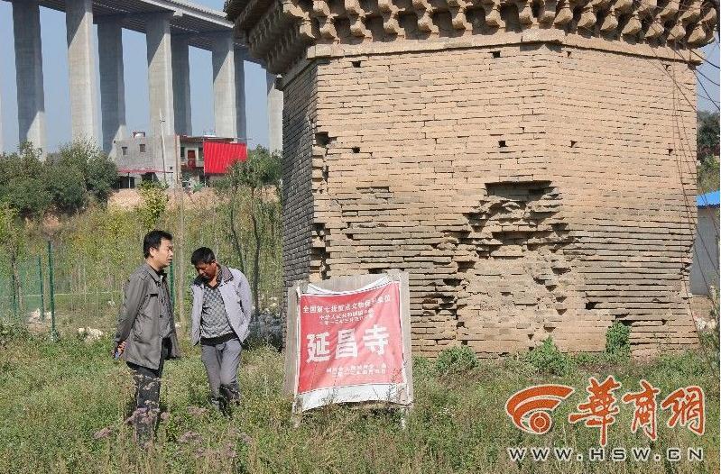 12日下午,華商報記者從銅川市文物旅游局了解到,延昌寺古塔已經(jīng)傾斜了很久,早在2005年左右,銅川新區(qū)管委會曾對古塔進(jìn)行過一次修葺,那根鋼索就是當(dāng)時系上去的。