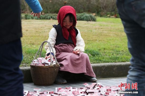 1月12日,上海外灘街頭出現(xiàn)一位小女孩,她身穿古典長裙,頭裹赭紅色圍巾,挎著裝滿火柴的小竹籃,在寒風(fēng)中向過往的路人送小火柴。據(jù)了解,這是一次“愛心衣櫥”幫助中國山區(qū)孩子擺脫寒冷的愛心募捐活動(dòng)。在寒冷的冬天,他們嘗試以“賣火柴的小女孩”活動(dòng),喚起社會(huì)的關(guān)注,把更多的溫暖傳遞到中國山區(qū)寒冷孩子的手上。只要掃一掃火柴盒上的二維碼,就可以立刻向山區(qū)孩子送上一套溫暖新衣。張亨偉 攝