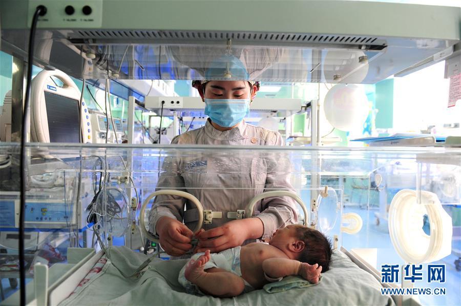 2月22日,在河南省商丘市柘城縣人民醫(yī)院,新生兒病區(qū)的護(hù)士在給一位嬰兒做護(hù)理。由于近年來早產(chǎn)兒逐漸增多,醫(yī)院的暖箱一直處于飽和狀態(tài)。新華社發(fā) 馮大鵬 攝 圖片來源:新華網(wǎng)