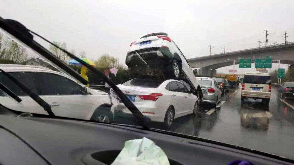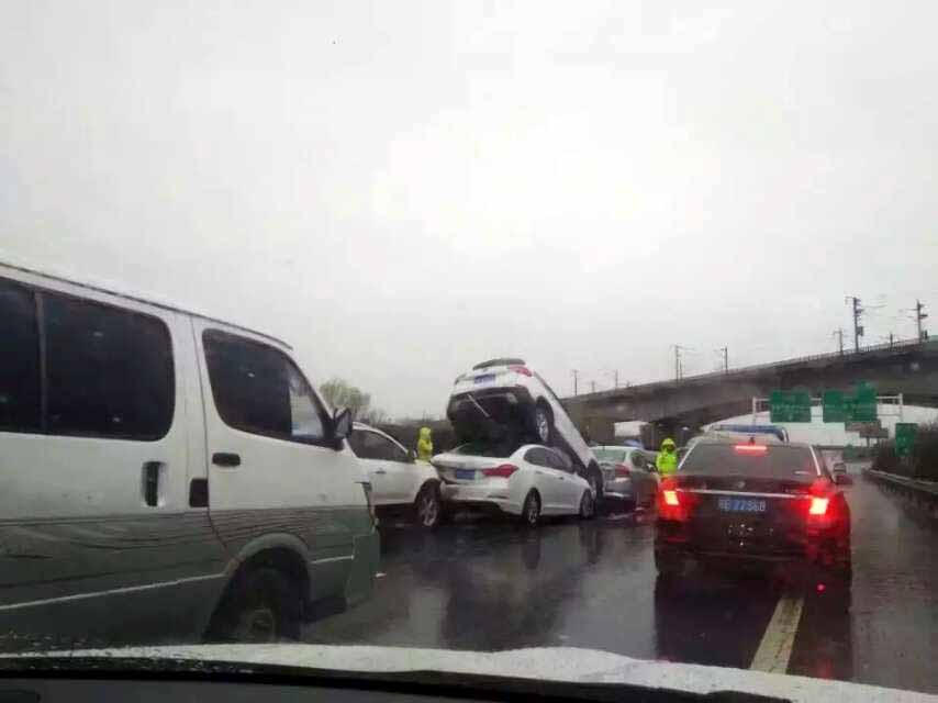 3月8日早上,受寒潮影響,南京雨水不停,寧馬高速南京方向的板橋附近,發(fā)生九車連環(huán)相撞事故,其中一輛SUV被后面追尾的轎車完全頂起,造成道路擁堵。目前,事故原因交警仍在調(diào)查中。