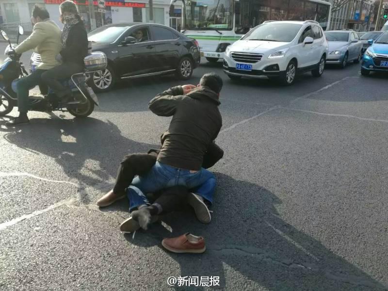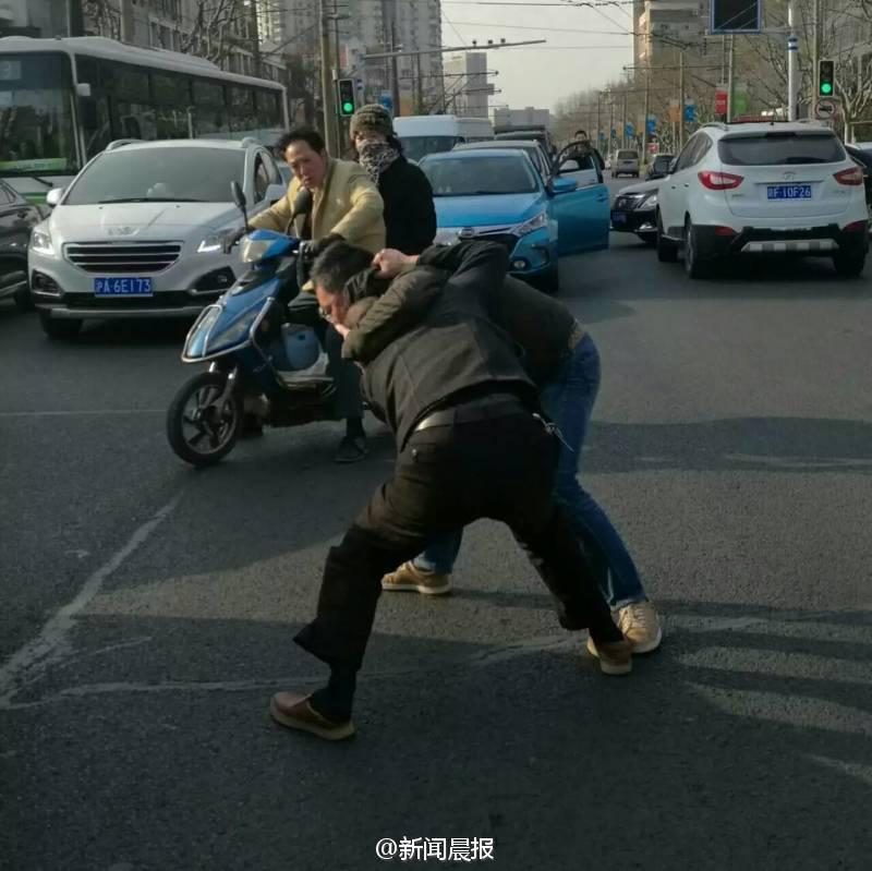 晨報訊 你一個過肩摔,我一個橫掃腿,接著扭打在一起,互相纏斗難分伯仲……這幕刺激的武打動作場景,昨天早高峰時在上海安波路營口路上演,而沖突竟源于“路怒”!目擊者肖先生告訴記者,昨天上午8點不到,他經(jīng)過安波路、營口路路口時,看看兩名男子扭打在一起,場面十分激烈?!拔翼槃菽贸鍪謾C拍了幾張照片,旁邊也有行人上去勸架?!毙は壬f,在兩名男子的身旁,一橫一豎停著兩輛轎車,“我想可能是兩個人開車有點摩擦引起的‘路怒’吧?!?/font>