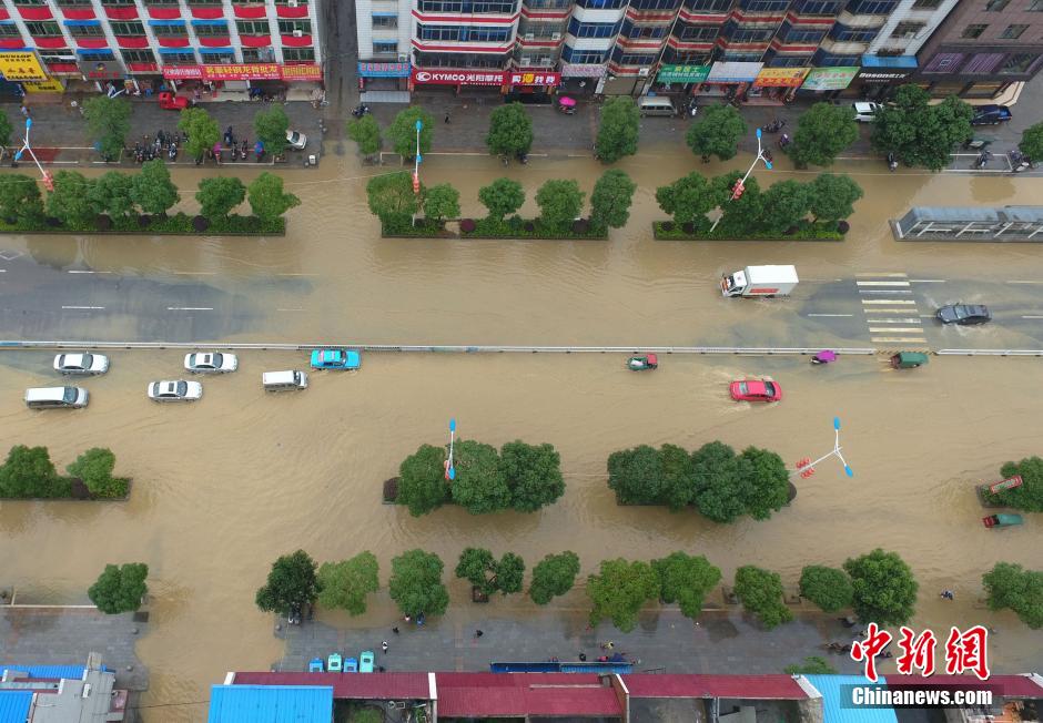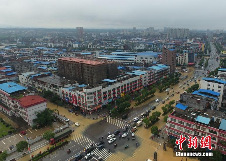5月5日,地處湘南的永州市道縣遭遇暴風(fēng)雨襲擊,縣城內(nèi)多處低洼路段被水淹沒(méi)。當(dāng)?shù)胤姥床块T正嚴(yán)密監(jiān)控雨情、水情,確保安全度汛。 中新社發(fā) 何紅福 攝
