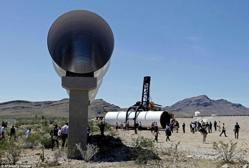 圖為Hyperloop One公司超級高鐵模型遠景,他們正在與另一家公司競爭,爭取首先開發(fā)出改變?nèi)藗兩畹某咚倭熊嚒?/p>