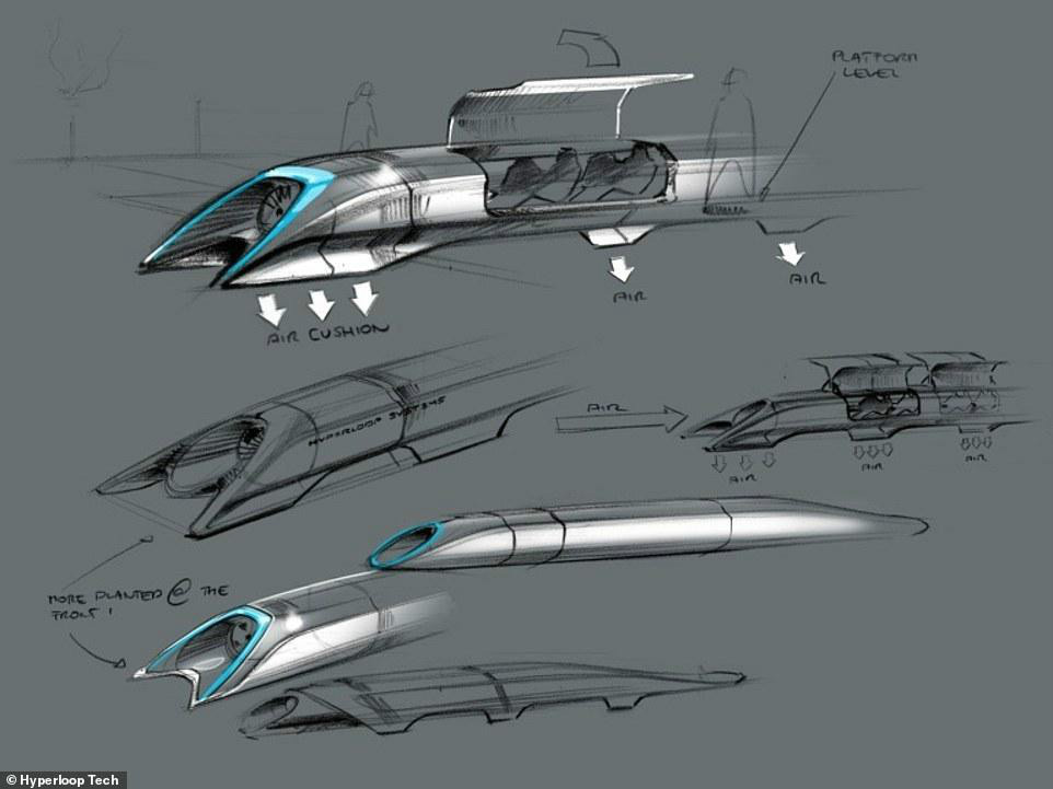 Hyperloop One公司的演示僅在另一家公司HTT進行演示的兩天之后,HTT公司展示了他們的磁懸浮技術。圖為HTT公司的超級高鐵概念圖。