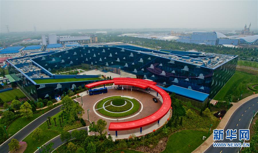 5月15日從空中俯瞰上海迪士尼玩具總動(dòng)員酒店。當(dāng)日,上海迪士尼主題酒店之——玩具總動(dòng)員酒店大堂、廣場(chǎng)、餐廳、度假區(qū)短駁車等區(qū)域及設(shè)施開始內(nèi)部測(cè)試。這家共有800個(gè)房間的主題酒店將于6月中旬正式迎客。新華社發(fā)(鈕一新 攝)