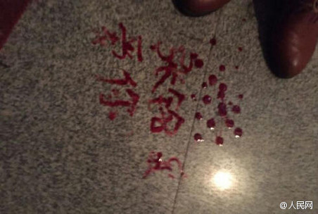 據(jù)綿陽新聞網(wǎng)報道,2016年5月31日,四川小伙小王報警,稱有一女子割破手指在其家門口寫“血書”表愛意,女子揚言見不到他便割腕,小王嚇得報警。