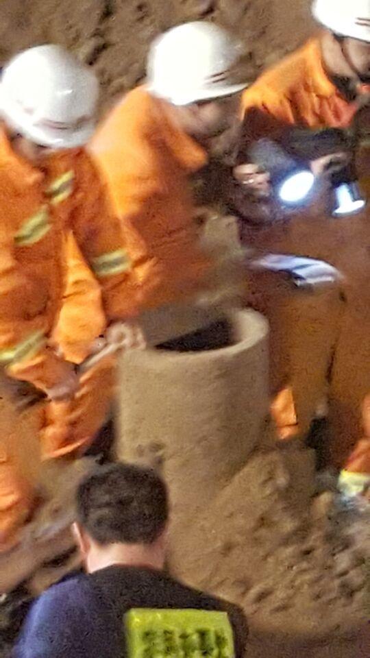 幸運(yùn)的是,女童生命體整正常,救援人員用瓶子給其輸入牛奶食品。家屬正疏導(dǎo)孩子的情緒,現(xiàn)場100多人正全力救援。