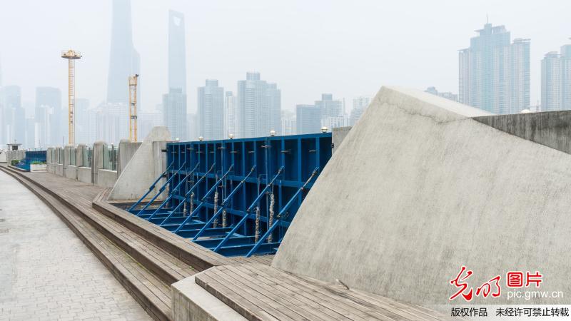 “抗洪神器”現(xiàn)身外灘 專家稱安全過關(guān)暫不擴建(王岡攝/光明圖片)