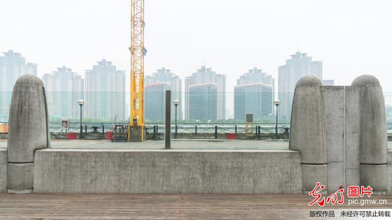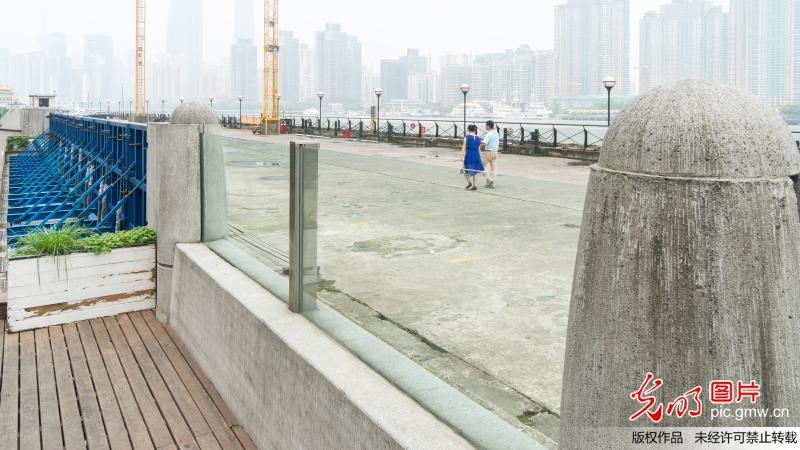當(dāng)日中午,走訪南外灘老碼頭,見到這一長達(dá)數(shù)十米,由鋼筋混凝土墻體和通透式玻璃組合而成的"抗洪神器",其中雙層玻璃防汛墻的厚度達(dá)到18毫米,既滿足防汛擋水需要,同時方便游客坐在岸堤邊欣賞老碼頭和江岸景色。(王岡攝/光明圖片)