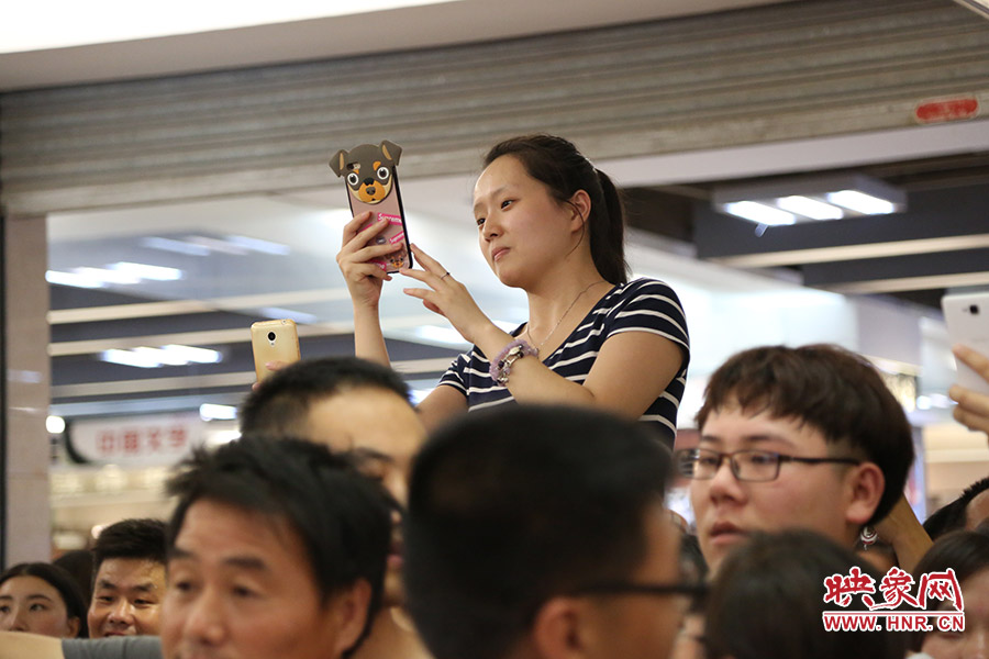 現(xiàn)場的熱心讀者為看六小齡童老師一眼,爬上了同伴的肩膀。