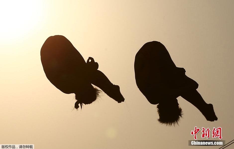 當(dāng)?shù)貢r(shí)間8月9日,2016里約奧運(yùn)跳水女子雙人十米臺(tái),中國(guó)選手陳若琳/劉惠瑕以354.00分獲得冠軍。圖為中國(guó)選手陳若琳/劉惠瑕在賽前熱身。