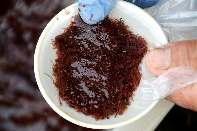 撈到的紅線蟲。
