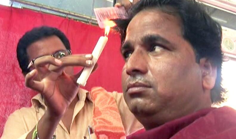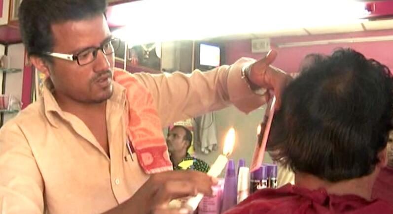 2016年11月1日報(bào)道(具體拍攝時(shí)間不詳),印度卡納塔克邦古爾伯加,28歲的DasharathKumar展示自己的獨(dú)門絕技——用蠟燭理發(fā)。