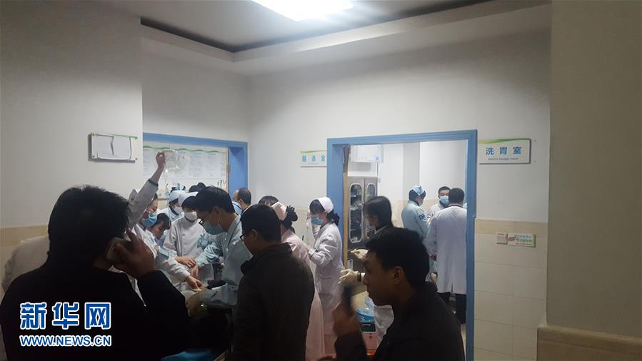 12月18日,在四川省巴中市中心醫(yī)院,醫(yī)護(hù)人員對疑似食物中毒人員進(jìn)行救治(手機(jī)拍攝)。記者18日從四川省巴中市委宣傳部獲悉,當(dāng)日巴州區(qū)金碑鄉(xiāng)發(fā)生一起涉及30名群眾的疑似食物中毒事件。目前,已造成2人死亡,3人病情較重。新華社發(fā)(新浪微博網(wǎng)友@巴中那些事 提供)
