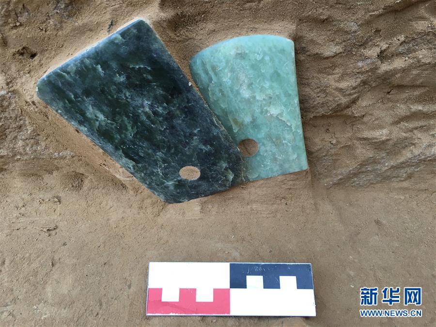 這是陜西神木縣石峁遺址皇城臺遺跡發(fā)現(xiàn)的玉器(2016年6月7日攝)。新華社發(fā)